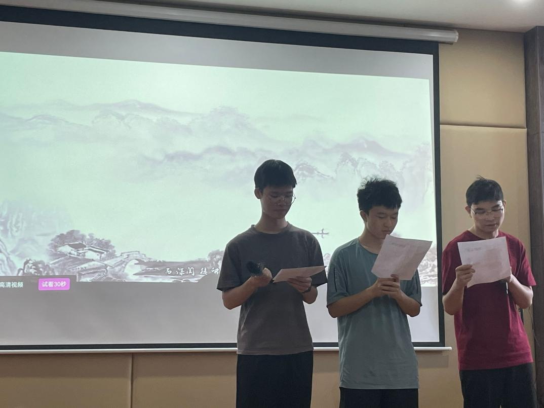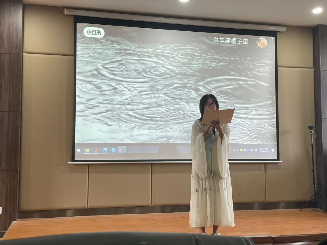 本次比赛邀请了黄金生、彭华飞等同学担任评委,共11位同学参与本次比赛。比赛由上半场和下半场组成,上半场举行个人组比赛,下半场举行集体组比赛。当选手朗读结束后,评委们根据诵读内容、语言表达、主体形象以及时间要求进行点评打分。比赛过程中,同学们通过深情诵读,将古典诗词、现代诗歌、散文等文学经典以声音的形式展现出来。他们用真挚的情感和饱满的热情诠释着每一篇作品,为现场观众带来了一场视听盛宴,赢得了大家热烈的掌声。