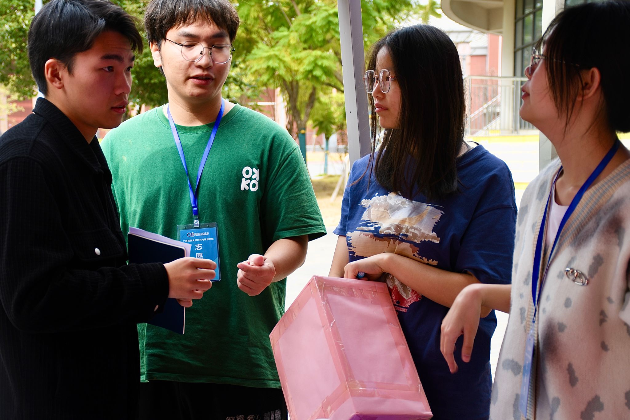 (活动组织工作人员就现场布置展开讨论交流)