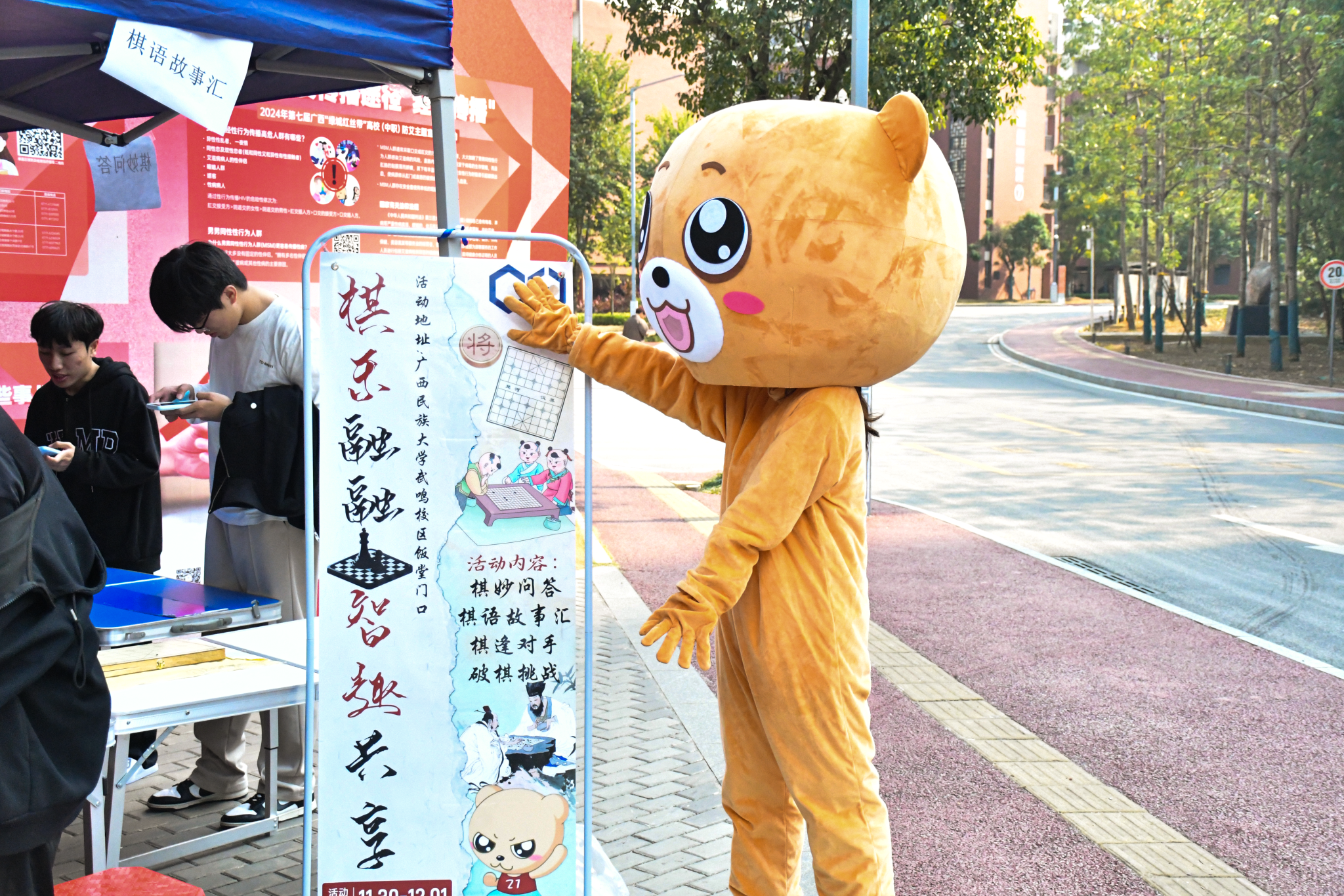 (公司活动志愿者穿上易班玩偶熊服在现场宣传活动)