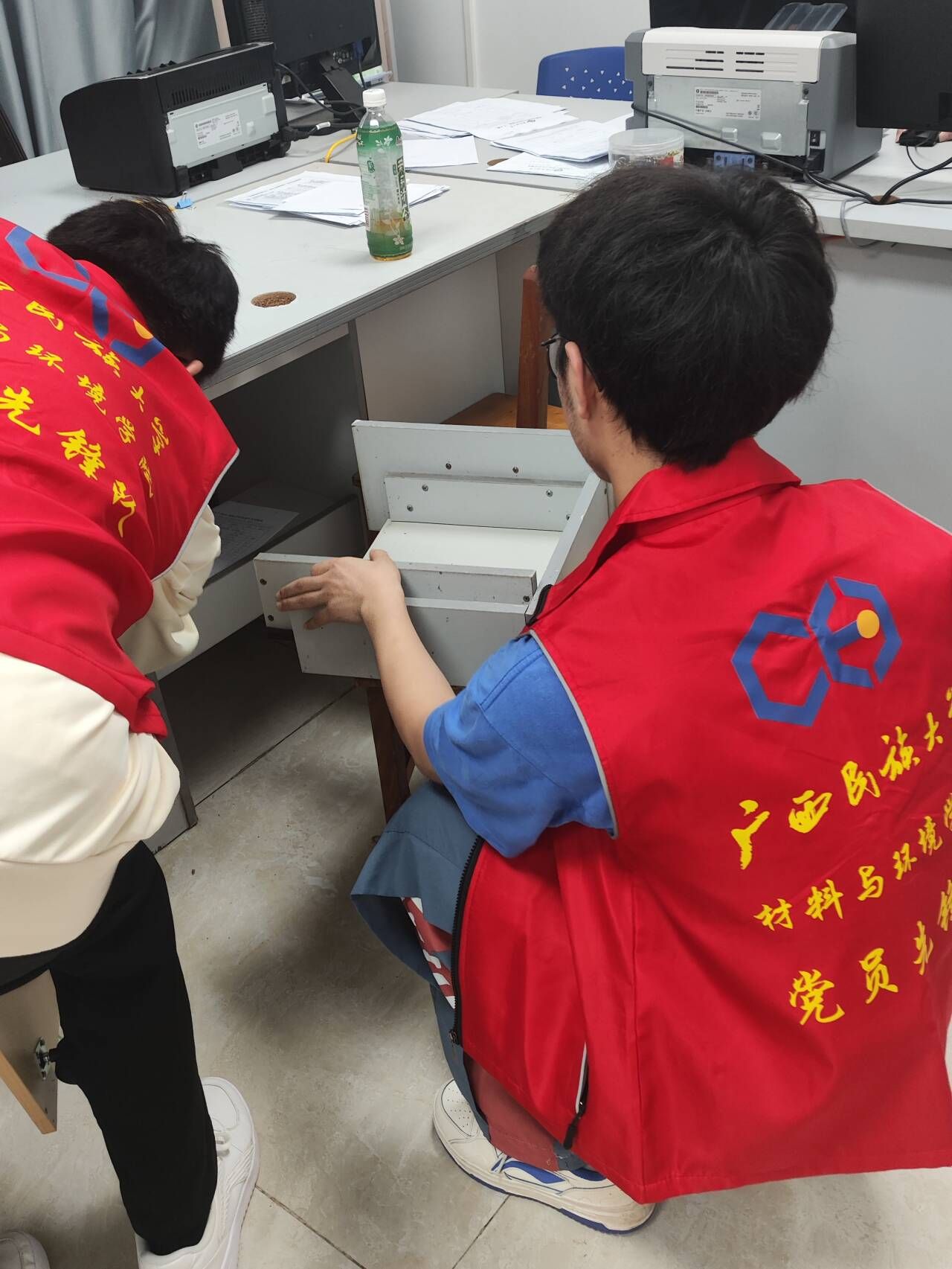 活动尾声,支部党员分组开展“我为群众办实事”实践行动。技术小组化身“设备医生”,为公司电脑进行系统优化与故障排查;后勤组则对教室桌椅进行全面检修与更换。党员们默契协作,笑容始终洋溢。“维修一台电脑、拧紧一颗螺丝,看似微小,却是服务师生的切实行动。”参与维修的张述利同志感慨道。