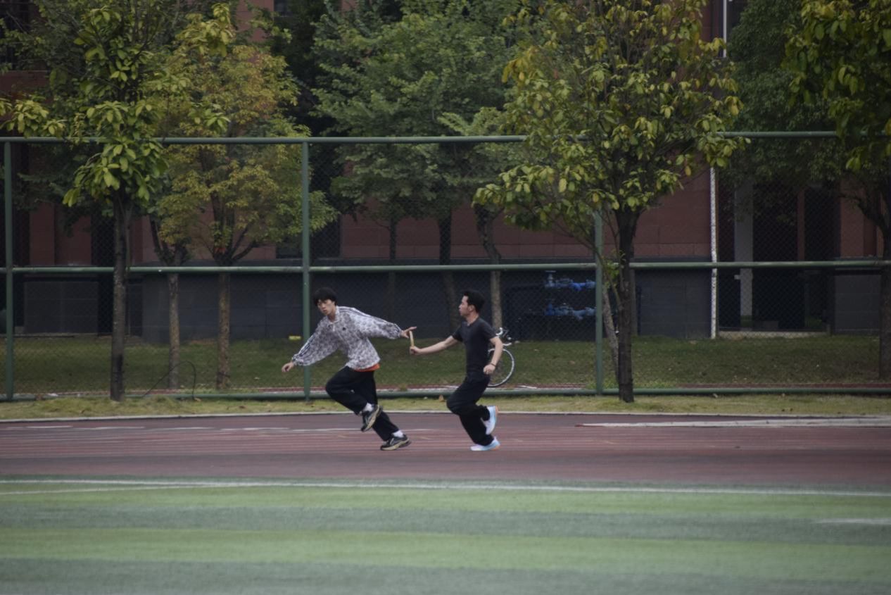 开幕式方阵表演排练现场,同学们精神饱满、配合默契。在带队同学的口令声中,大家反复调整队形、打磨动作,力求每一个细节都精准到位。手中舞动的花球,人群中奔跑的彩带,映衬着他们专注的身影,只为在校运会开幕式上展现材环学子最美的风采。