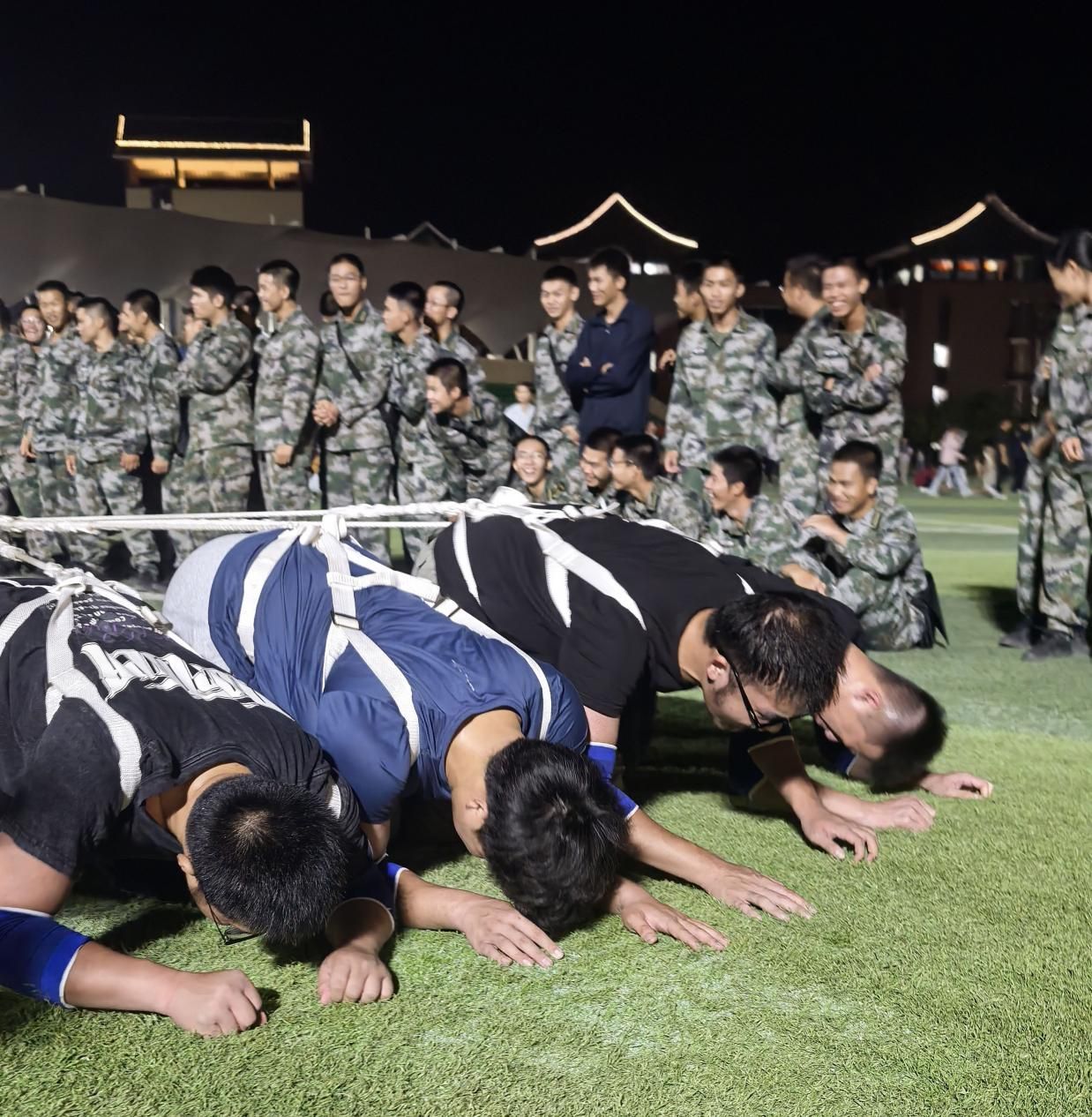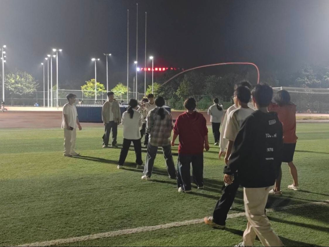 团体项目训练现场同样热火朝天。“大象拔河”项目中,队员们与人民武装公司的同学们展开实战演练,紧握绳索、协同发力,展现出坚韧不拔的拼搏精神;“协同大转盘”项目中,队员们围绕“快速转动、稳定衔接、零失误配合”的目标反复练习,专注每一个技术细节;“长绳”项目中,队员们从生疏到流畅,每一次起落都见证着团队的进步与成长。