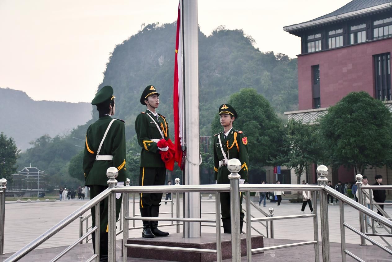 伴随着雄壮的《义勇军进行曲》,五星红旗冉冉升起,全体师生肃立行注目礼,高唱国歌,深切表达对祖国的敬意与热爱。